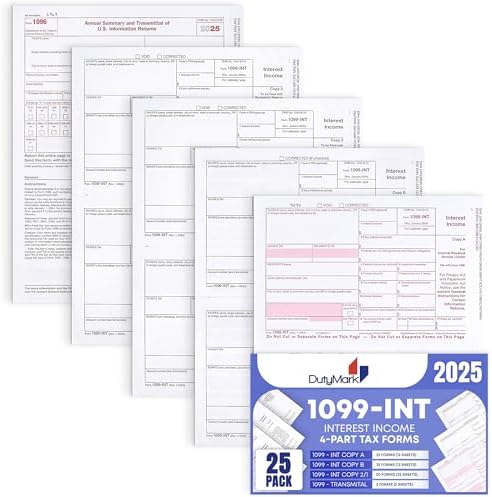 25 Pack Set of 1099-INT Forms for Reporting Interest