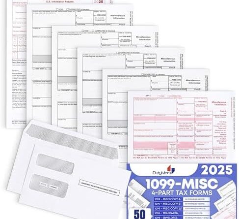 1099 MISC Forms 2025 with Envelopes, 4 Part Laser Tax Forms, 50 Vendors Kit with 50 Self-Seal Envelopes – Compatible for QuickBooks and Accounting Software, with 3 1096 Included, 50 Pack MISC 2025