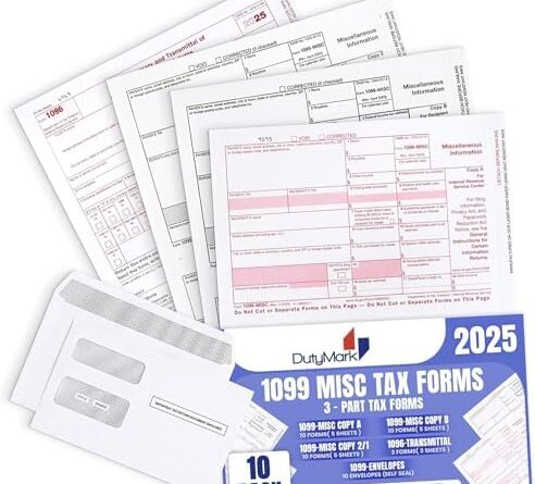 1099 Misc Tax Forms 2025 Complete 3-Part Laser – Kit for 10 Vendors, and 10 Self-Seal Envelopes Good for QB and Accounting Software,1099 Misc 2025