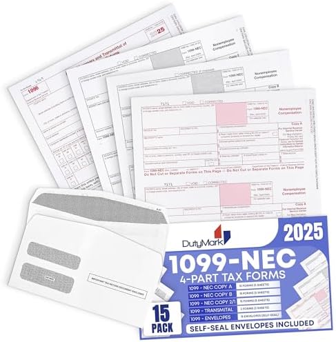 Premium Value Pack – Get more value for your money! This premium bundle includes 15 sets of 4-part 1099 NEC tax forms updated for 2025 . We’ve also included matching 15 standard self-seal envelopes.