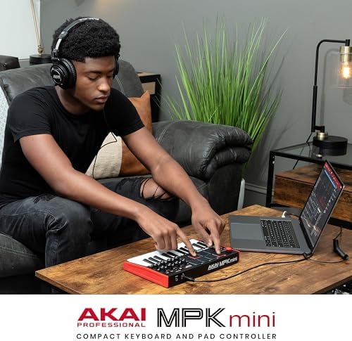 Akai Professional MPK Mini MK3 25 Key USB MIDI Keyboard Controller With 8 Backlit Drum Pads, 8 Knobs, Music Production Software and Native Instruments Sound Package (NKS Integration)