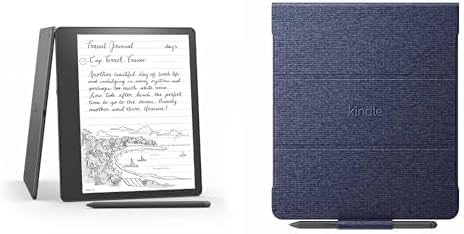 Amazon Kindle Scribe Essentials Bundle including Like- New Kindle Scribe(16 GB)- Good Grey, Premium Pen and Fabric Folio- Denim