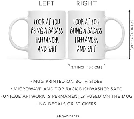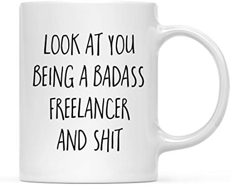 Andaz Press 11oz. Funny Coffee Mug Gift, Look at You Being a Badass Freelancer and Shit, 1-Pack, Includes Gift Box, Christmas Birthday Drinking Wine Alcohol Cup Ideas for Coworker Boss Him Her Adults