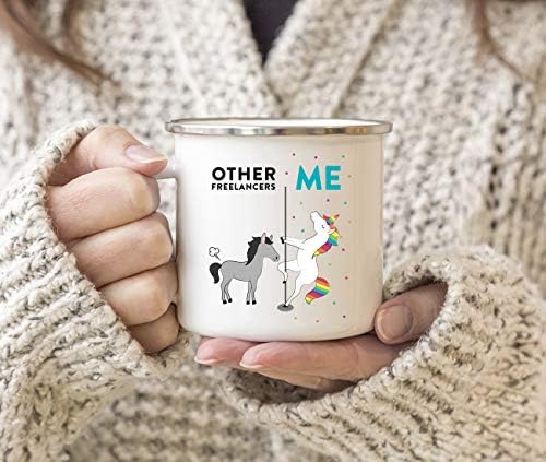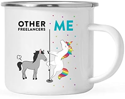 Andaz Press Funny Quirky 11oz. Stainless Steel Campfire Coffee Tea Mug Thank You Gift, Other Freelancers Me, Horse Unicorn, 1-Pack