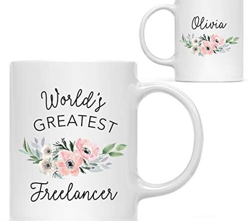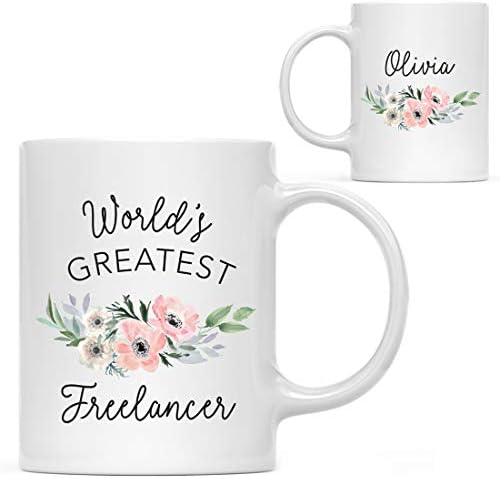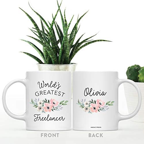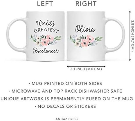 Andaz Press Personalized 11oz. Coffee Mug, World’s Greatest Freelancer Mug, Pink Anemone Flower, 1-Pack