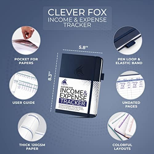 Clever Fox Income & Expense Tracker – Accounting & Bookkeeping Ledger Book for Small Business – 1-Year Record Notebook, A5 (Dark Blue)