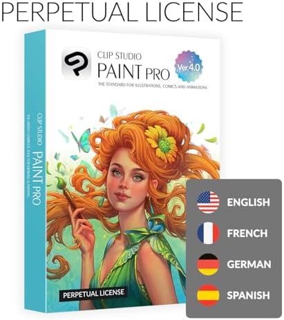CLIP STUDIO PAINT PRO Version 4 – Perfect for illustrations and concept art with unlimited brush customization. Includes features for manga, comics, and animations up to 24 frames and more!