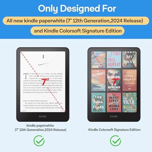 Perfect Fit: This full-coverage protector is specifically designed for the all-new Kindle Paperwhite 12th Gen & Kindle Paperwhite Signature Edition 2024 (7″) & Kindle Colorsoft Signature Edition (7″) and Kobo Aura H2O edition. Before purchasing, please verify your device model to ensure compatibility and proper fit
