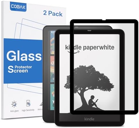CoBak 2 Pack Matte Tempered Glass Screen Protector for 7″ Kindle Paperwhite 12th Gen 2024 & Kindle Colorsoft Signature Edition, Kobo Aura 2 – Fingerprint Resistant, Anti-Bubble – 9H Hardness Film