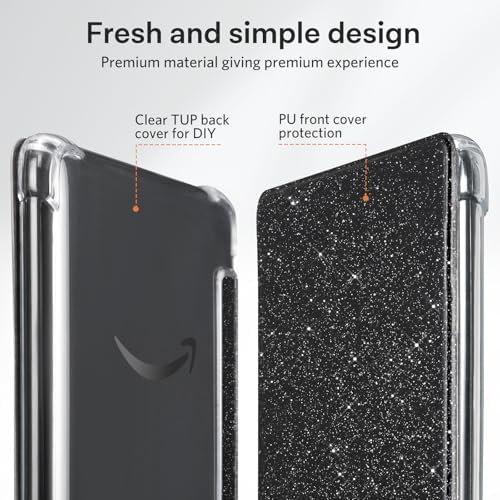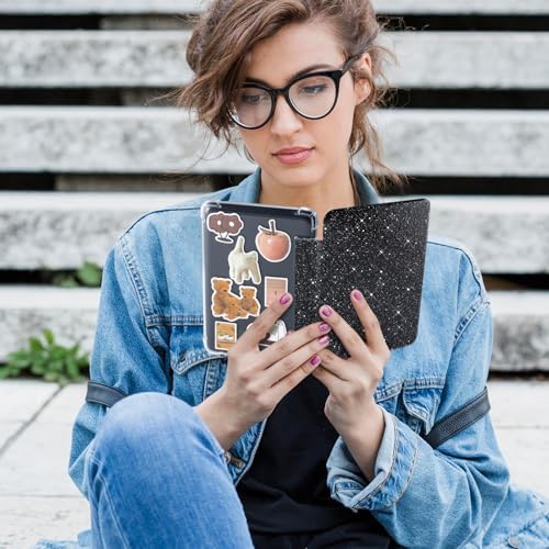 CoBak Case for 6″ Kindle 11th Gen (2024 and 2022 Release) – Ultra Slim Transparent Clear TPU Back Shell Protective Cover with Auto Wake/Sleep for Kindle 11th Generation 2024 Release, Glitter Black