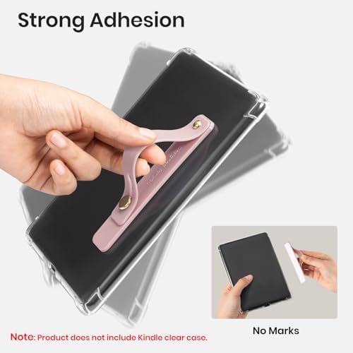 CoBak Hand Strap Holder for Kindle/Tablet – Lightweight TPU One-Handed Grip with Strong Stick, Stand for Phone, Adjustable Tightness for Kindle/Kobo/Voyaga/Lenovo/Sony E-Book Tablet, Pink