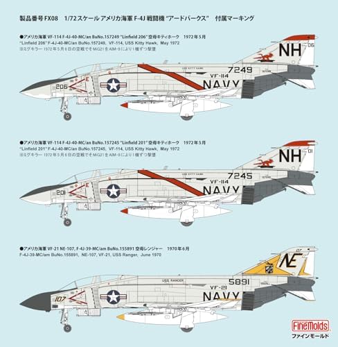 Finemold FX08 1/72 Jet Series USA F-4J Fighter Aircraft Arbarks, Plastic Model