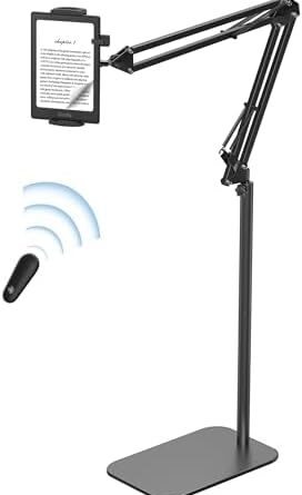 Highly popular combo product: This highly famous floor stand combined with the famous Kindle page turner is the perfect combination of reading accessories. Features a Kindle holder with remote page turner, freeing up your hands. A must-have Kindle accessories for women and men, providing comfort and ease during your reading experience.The perfect solution for reading in bed.