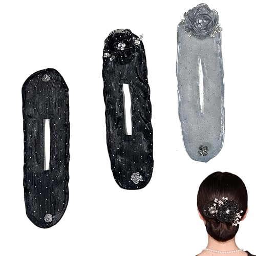 Flower Diamond Mesh Hair Disk, 2026 Upgraded Hair Accessories for Women Flower Bun Roller, Lace Flower Hair Disk for Women Girls (3 Pcs Set)