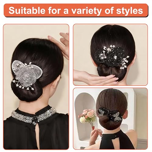 【High-Quality Craftsmanship】The Flower Diamond Mesh Hair Disk is adorned with delicate lace flowers and sparkling diamond mesh details, adding an elegant touch to your everyday style. This mesh bun curler adds a touch of sophistication and layering to your updo, making it easy to style for casual outings, weddings, or formal occasions.