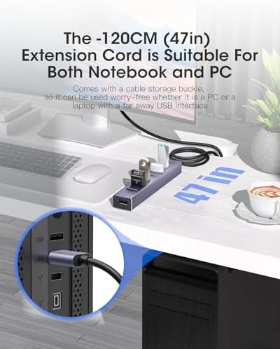 【Portable Long cable USB hub】With 7 port usb hub 3.0 , suitable for both laptops and PC,desk usb hub, you can easily connect multiple USB peripherals, such as flash drives, mice, keyboards, and printers, to your computer.
