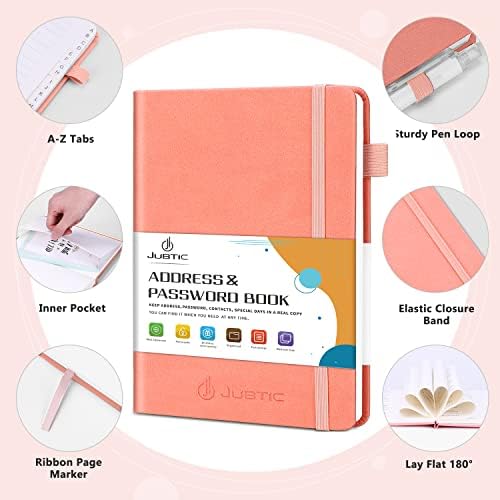 JUBTIC Address book with Alphabetical Tabs, Hardcover Password Keeper and Telephone Book Address Organizer Record Contacts, Internet Login Address Log book Journal Notebook for Home or Office-Pink