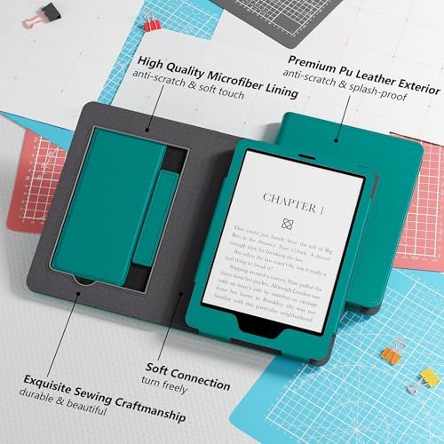 Lainergie Kindle Case 6 Inch for New 6″ Kindle (11th Generation, 2024/2022 Release), Slim PU Leather Smart Shell Cover for Kindle Basic with Stand, Hand Strap, Auto-Wake/Sleep, Jade