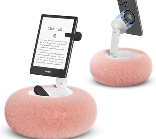 Magnetic Phone Pillow Stand, Phone Holder for Bed,Lap,Desk, Cozy Pillow Stand with Snack Bowl and 2 Magnetic Rings, Compatible with 3.5-7″ iPhone,E-Reader, Kindle, Pink