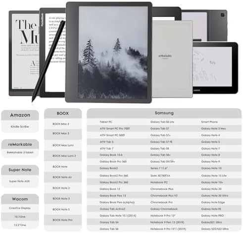 Our EMR pen is compatible with a wide range of EMR electric devices, including Remarkable 2, Kindle Scribe, Samsung tablets, Wacom devices, our EMR stylus for remarkable 2 pen/Kindle Scribe pen delivers excellent performance and seamless compatibility across multiple platforms. Please note that the size of the stylus pen may vary for different tablets. Before making a purchase, please carefully check whether the product is compatible with your device to ensure a perfect match.