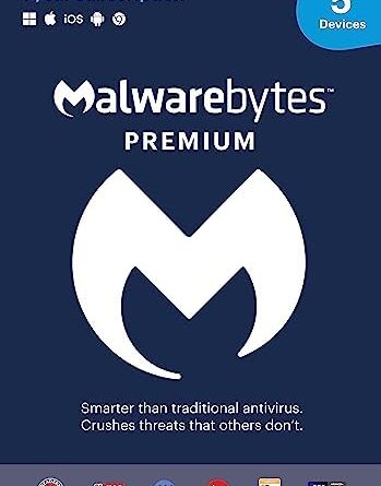 Malwarebytes Premium Software | 5 Device 1 Year (Windows, Mac OS, Android, Apple iOS, Chrome) [software_key_card]