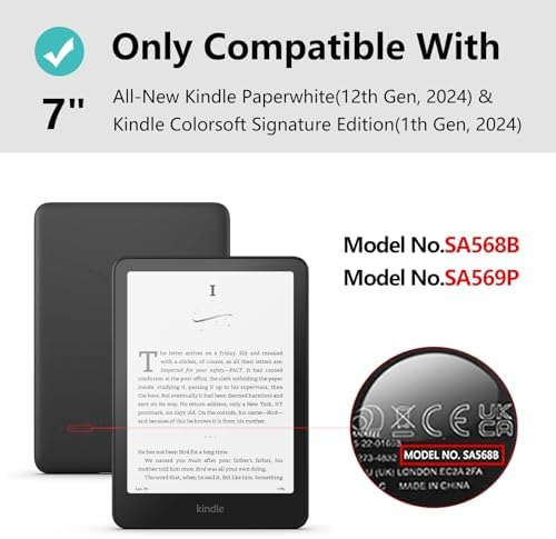 【For Kindle Paperwhite 2024】Only Designed for All-New 7 inch Kindle Paperwhite and Kindle Paperwhite Signature Edition (12th Generation, 2024 Released), Kindle Colorsoft Signature Edition (1st Generation, 2024 Released). Model No.SA568B/SA569P. Note: This case will Not be compatible with any other Kindle devices! Please check your Kindle verify the model number before purchase.