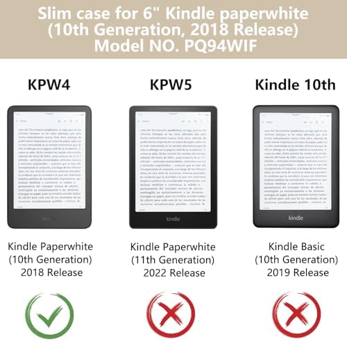 【Designed For Kindle Paperwhite 2018 Release】Only Designed for 6″ Kindle Paperwhite(10th Generation, 2018 Release).Model No. PQ94WIF.Please check your Kindle verify the model number before purchase.⚠️Note: It will Not be compatible with other Kindle devices!