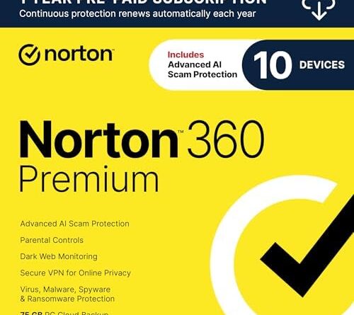 Norton 360 Premium 2026 Ready, Antivirus software for 10 Devices with Auto-Renewal – Includes Advanced AI Scam Protection, VPN, Dark Web Monitoring & PC Cloud Backup [Download]