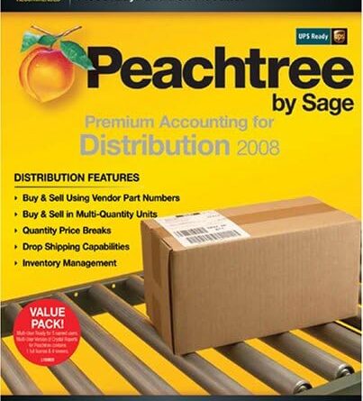 Peachtree by Sage Premium Accounting for Distribution 2008 Multi-User Value Pack provides access for five named users with screen-level security and a clear audit trail, advanced accounting and analysis tools, distribution-specific features and reports, and Crystal Reports for Peachtree to help small distribution companies improve their operations. Premium features include flexible pricing, customer and vendor management, serialized inventory tracking, the ability to automatically generate purchase orders based on minimum stock levels and re-order quantities, advanced drop shipping, and the ability to buy/sell in multi-quantity units. Peachtree Premium Accounting for Distribution 2008 is the ideal choice for small distribution companies that want to improve their operations.