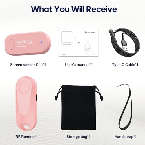 Type-C charging: USB charging eliminates the trouble of changing batteries. If you use Screen sensor Clip to read a book for 3.4 hours, it can standby for one month. If you use RF Remote to read a book for 3.4 hours, it can standby for three months. Without worrying about frequent charging. Packaging Details: Screen sensor Clip*1, RF Remote*1, Type-C Cable*1, User’s manual *1, Storage bag*1, Hand strap*1