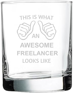 This Is What An Awesome Freelancer Looks Like Whiskey Bourbon Glass Old Fashsioned 10.5 Oz Laser Engraved Clear Custom Cocktail Glasses Etched Crafted Work Customized/Personalized Gift Cup Mug