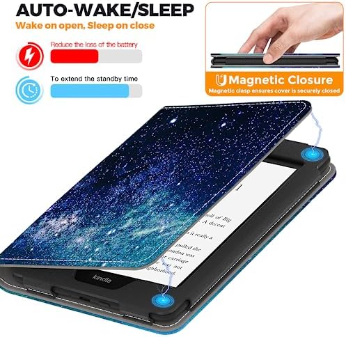 VORI Stand Case for 7″/6.8″ Kindle Paperwhite (12th/11th Generation-2024/2021) and Kindle Colorsoft Signature Edition, PU Leather Case Smart Protective Cover with Auto-Wake/Sleep, Galaxy